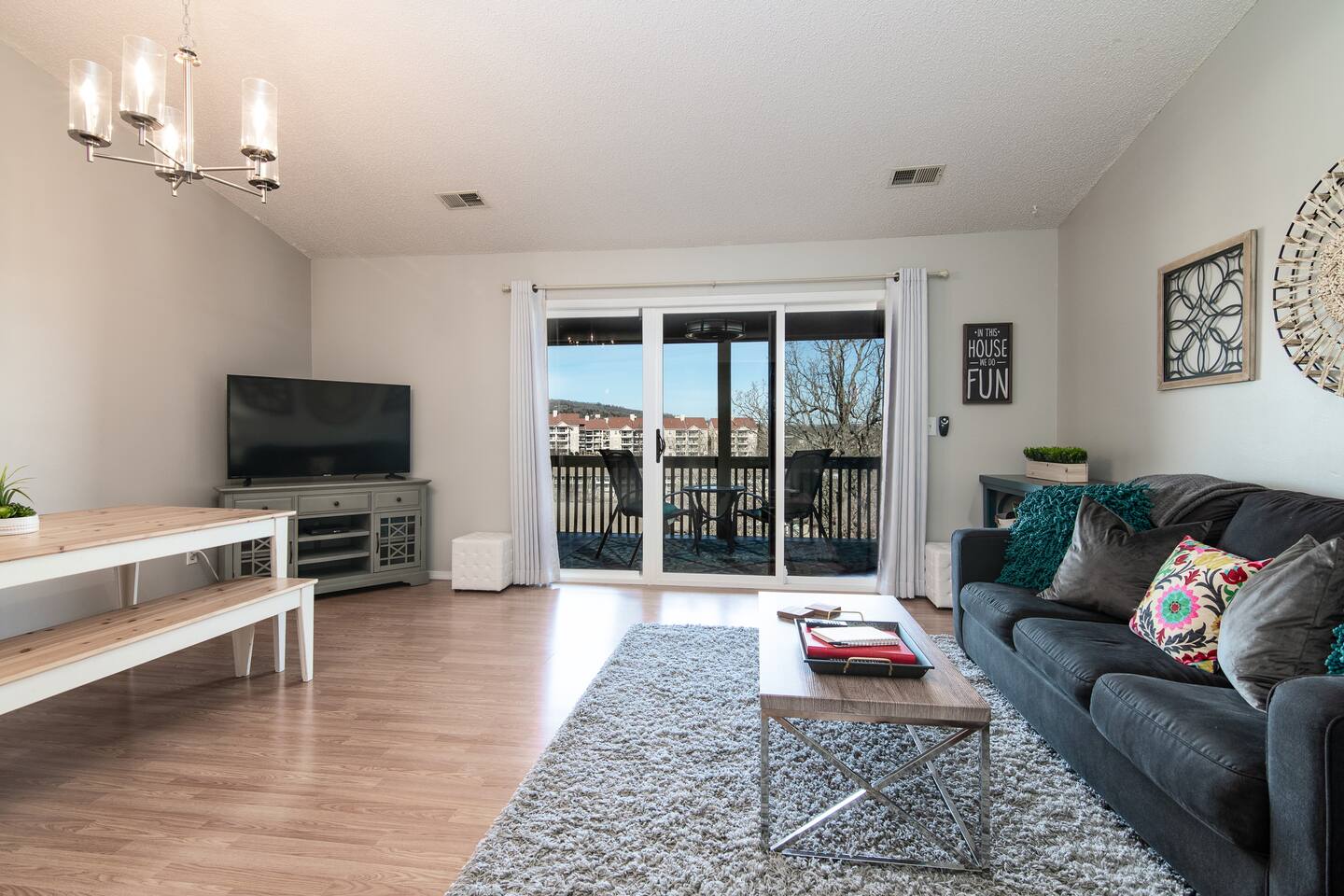 A stay at our condo provides complimentary access to all Pointe Royale Resort amenities, including: outdoor pool (typically open from Memorial Day to Labor Day), year round heated indoor pool, hot tub, tennis/basketball courts, discounted golf rates, restaurant and banquet hall, playground, Lake Taneycomo shoreline access for world class trout fishing, walking paths on the beautifully maintained grounds, and more! This is a well-kept, safe community with a 24/7 gatehouse. We know how important it is to provide a safe, clean, and comfortable place to unwind during a fun-filled vacation. It's our mission to ensure high standards for cleanliness at each and every turnover and provide our guests with everything they need to feel at home, with a focus on those items that make a difference, like comfortable mattresses, quality towels and linens, and a well stocked kitchen. We pride ourselves on going above and beyond to provide extras that you won’t find at many other vacation rental properties in the area. Being a guest doesn't happen everyday, so when it does it should be a one of a kind experience! While we do our best to anticipate your needs, we realize Airbnb/VRBO is not a traditional hotel and this type of experience is not for everyone. If you have questions or if you are new to Airbnb/VRBO, we invite you to reach out to discuss whether our condo is a good fit for your vacation. Before booking, we ask that you read through our entire listing description and house rules, then provide some information about yourself and your vacation in the reservation message. OVERVIEW: Our place is approximately 1000 square feet, located on the top floor, up a single flight of stairs. We have two bedrooms, plus a pull out queen size sofa sleeper in the living room. We can accommodate up to 6 guests, but recommend the sleeper sofa for children only. Highlights of each space and additional details are listed below. We look forward to hosting you soon! TV AND INTERNET: Our unit is outfitted with YouTube TV which provides live local channels and basic cable channels (ESPN, HGTV, etc..). A small DVD collection is also available. *Free high-speed WiFi *Two TVs – one in living room and one in master bedroom *Nintendo NES Classic pre-loaded with 30+ games KITCHEN: *All newer appliances *Fully stocked with dishes, utensils and cookware *Keurig Duo coffee maker for carafe or K-cup brewing LIVING SPACE *Vaulted ceilings with open concept in the kitchen/living/dining room *Blackout curtains and sofa sleeper with foam topper in living room *Over-sized sliding patio doors BEDROOMS *Master bedroom features a memory foam, king size bed and has a TV, en-suite full bathroom and sliding doors to the back patio *Guest bedroom features a queen size Westbury Plush Simmons mattress (the same mattress found in boutique hotels!) *Each room has light blocking window shades *Each room has a dresser or chest of drawers and closet BATHROOMS *Marble vanity with storage space *Hair dryer, towels, soap and shampoo provided *Tub/Shower combo LAUNDRY/OTHER: *High-Efficiency washer/dryer in the unit *Iron and ironing board *Pool towels provided *Basketball provided *Tennis racquets provided