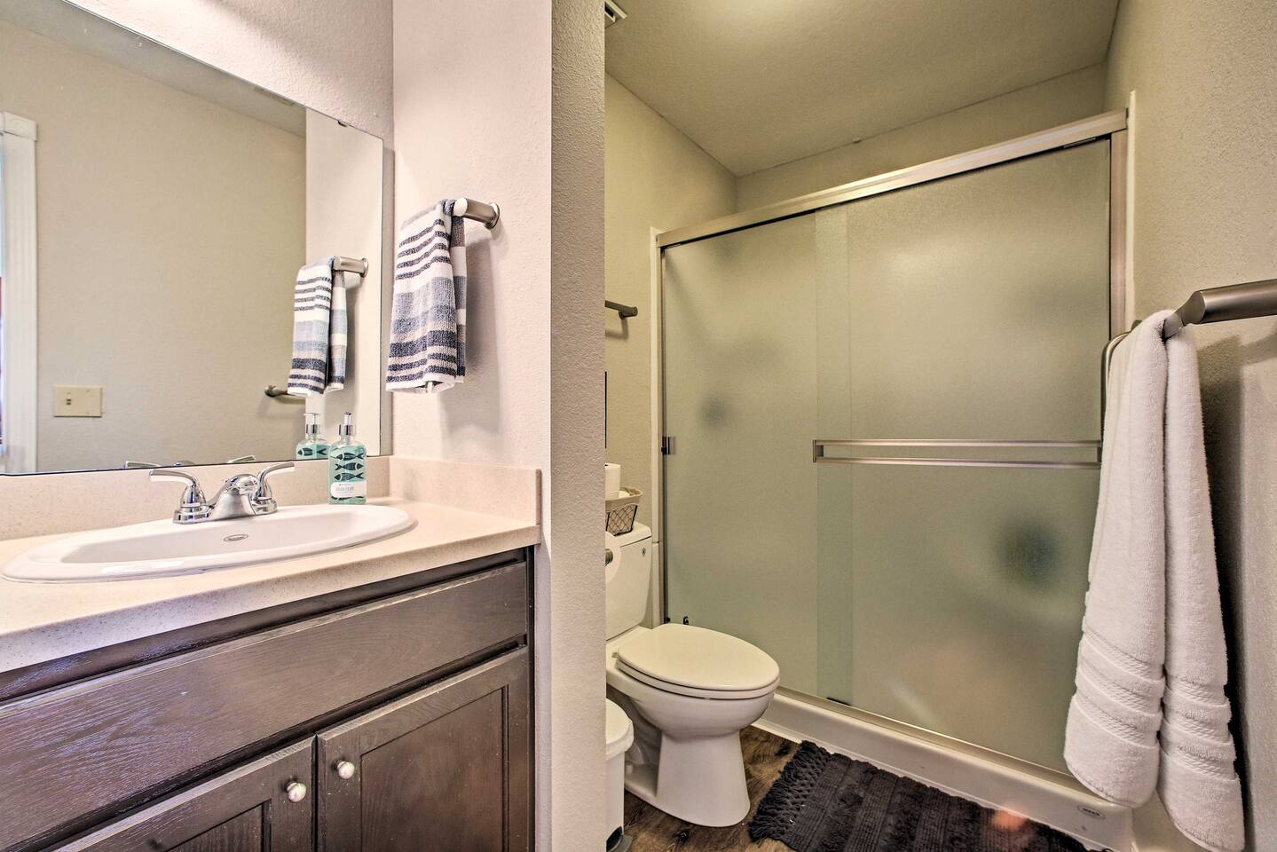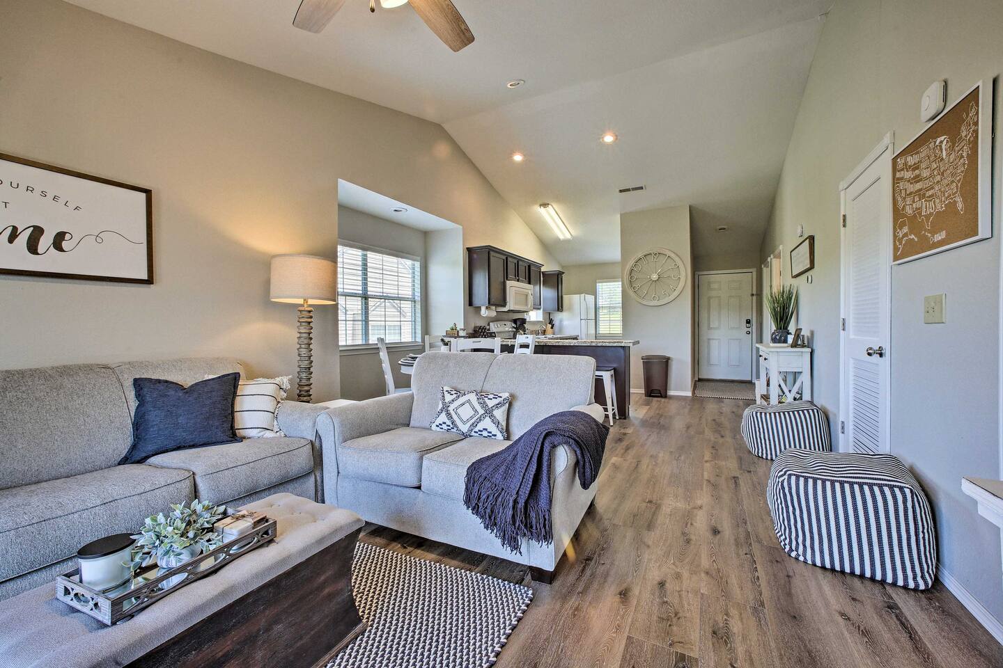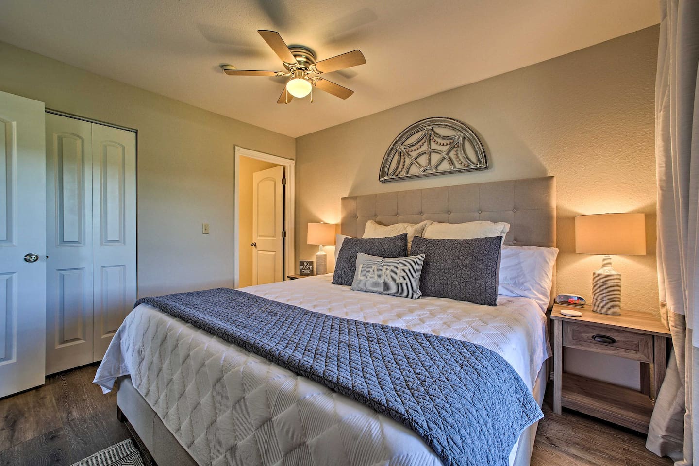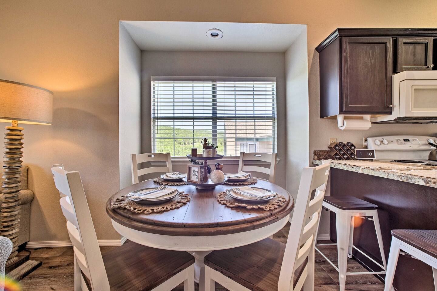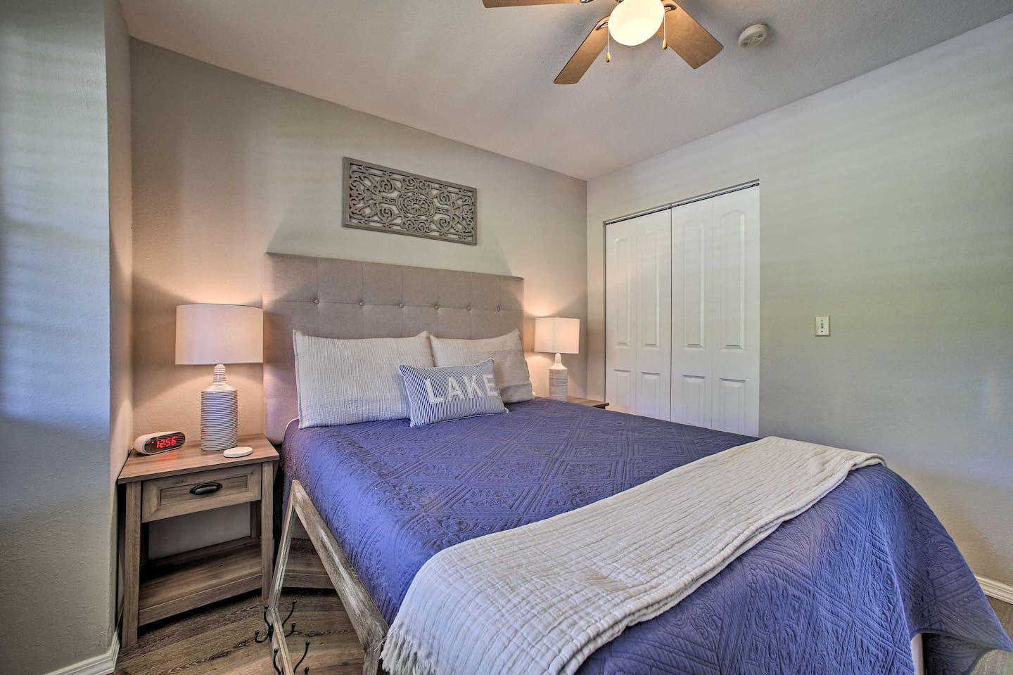 -- THE PROPERTY -- Fully Renovated in Summer of 2019! We outfitted our condo with brand new features and fixtures. This cozy condo welcomes your family home after long days out on the lake or wandering the theme parks! BONUS: Our property is one of 30 in the 200 unit complex that has access to the Indoor and Outdoor Pool w/Splash Pads located in the Landing complex at the top of the hill. Indoor pool is closed from Jan 15 - 31 for repairs. Hours vary by season. If you anticipate early or late use, feel free to check with us for the hours that line up with your reservation dates. Master Bedroom: King Bed with TV, ensuite bathroom, and access to back deck. Bedroom 2: Queen Bed Living Room: 1 Sleeper Sofa (1 full) RESORT AMENITIES: Outdoor pool, hot tub, walking trails to Table Rock Lake, tennis court, playgrounds, basketball hoops, park-style grills. Outdoor pools are typically open from Memorial Day to Labor Day. OUTDOOR LIVING: Mountain and lake views, outdoor dining set INDOOR LIVING: New paint, flooring, furnishings and doors; 4-person dining table, 3 flat-screen cable/Smart TVs KITCHEN: Fully equipped, Keurig coffeemaker, microwave, oven/stove, full-size fridge GENERAL: Free WiFi, in-unit washer/dryer, linens/towels, Pack 'n Play PARKING: Community lot (2 vehicles), on-site trailer parking (with an additional fee)