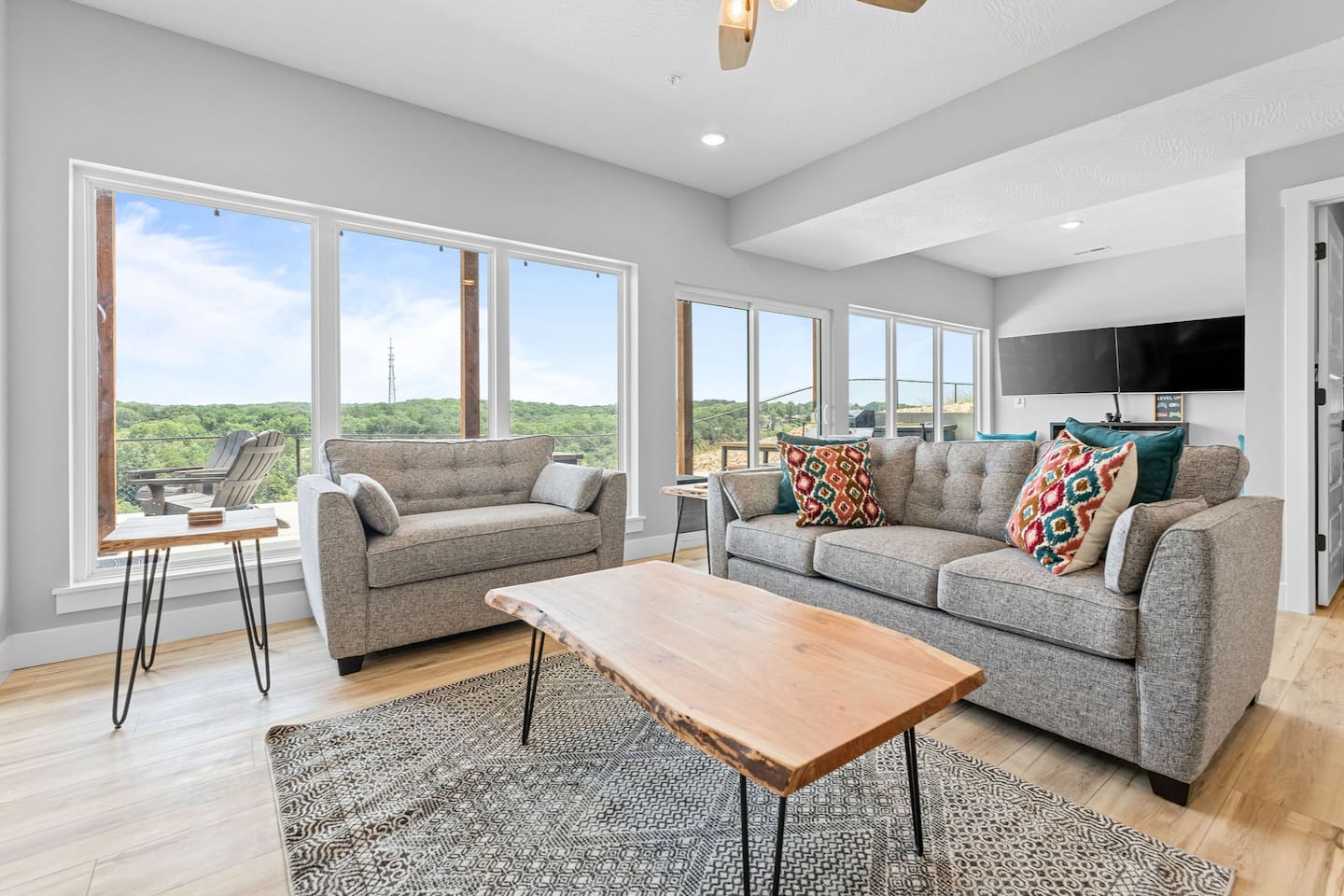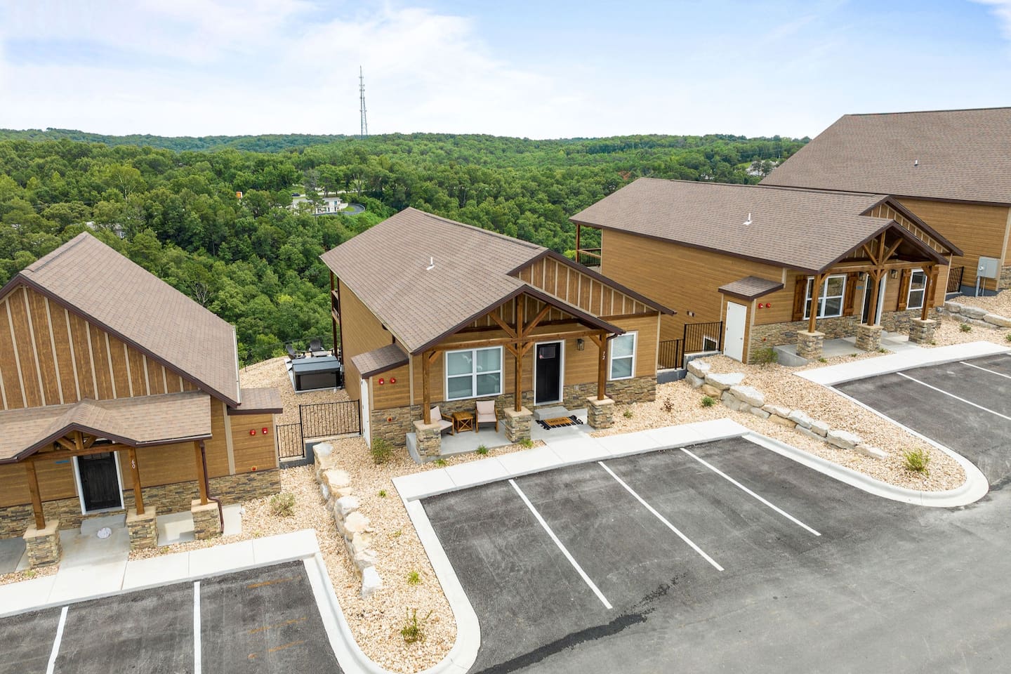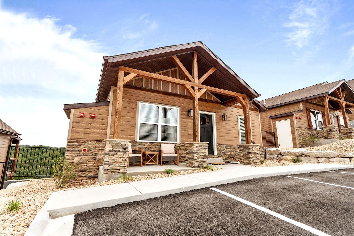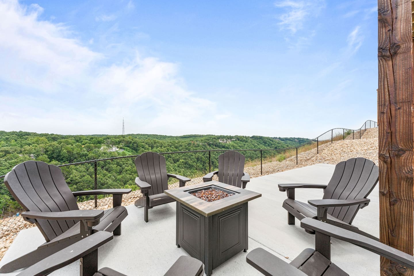 Livin' on the Ledge at Table Rock Lake is a beautiful lodge that was completed in 2023. It features five ensuite bedrooms and a private hot tub, firepit, tailgate gaming area, and arcade room for guests' entertainment. The location is a peaceful setting with just a short drive to Branson's attractions, including Silver Dollar City, White Water, Dogwood Canyon, and Golfing. Wilderness Mountain is a luxurious, lakefront development with stunning views of the Ozark Mountains and Table Rock Lake.