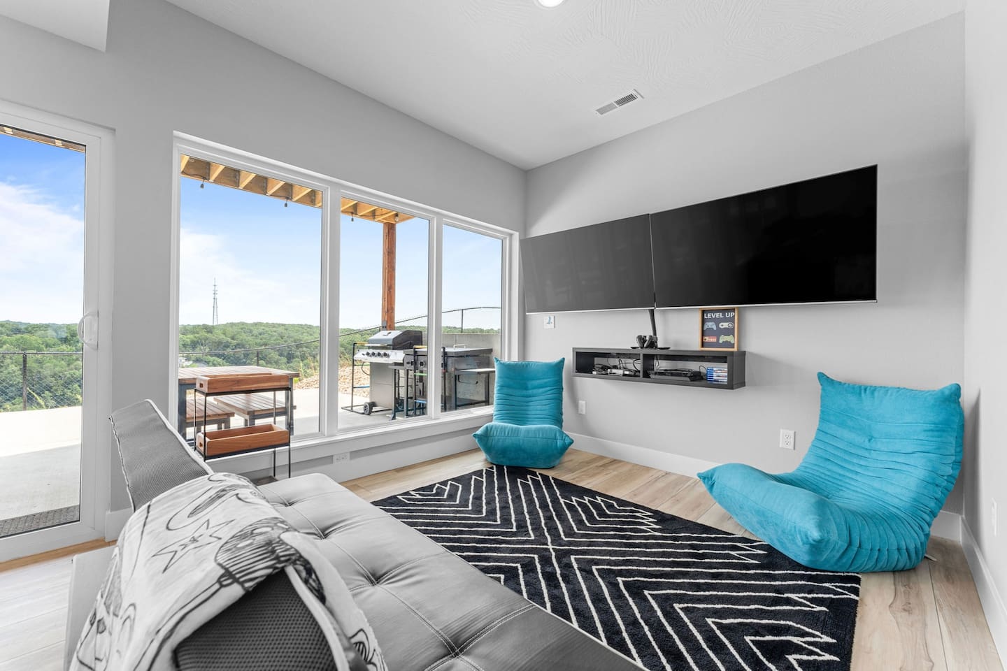 Additional amenities include: Free WiFi Dedicated Parking Laundry on both levels Charcoal Grill Boardgames Gaming system Smart TV’s in every bedroom and living areas Digital Guidebook